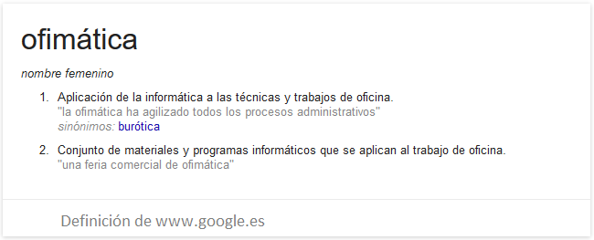 La ofimĆ”tica estĆ” formada por un conjunto de herramientas informĆ”ticas que se emplean para realizar trabajos caracterĆsticos de una oficina, de una formaĀ optimizada y automatizada, buscando la mĆ”xima eficiencia. De esta misma definición se puede averiguar que la palabra ofimĆ”tica se obtiene combinando "oficina" e "informĆ”tica".
